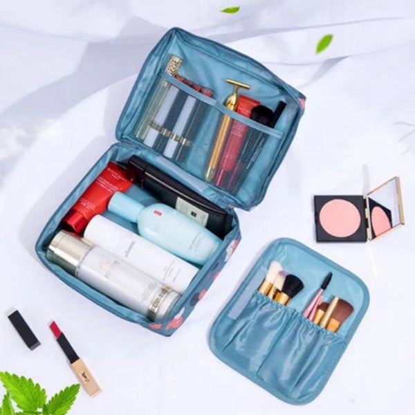 Prostoren potovalni organizator za kozmetiko in toaletne potrebščine. Ta potovalna kozmetična torbica je praktična in kompaktna. Ima več predalov za praktično in pregledno shranjevanje kozmetike. Izdelana je iz vodoodpornega materiala, ki ga je enostavno čistiti. Ima stranski ročaj za lažje prenašanje.
