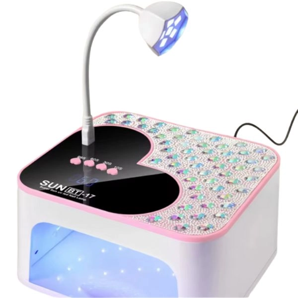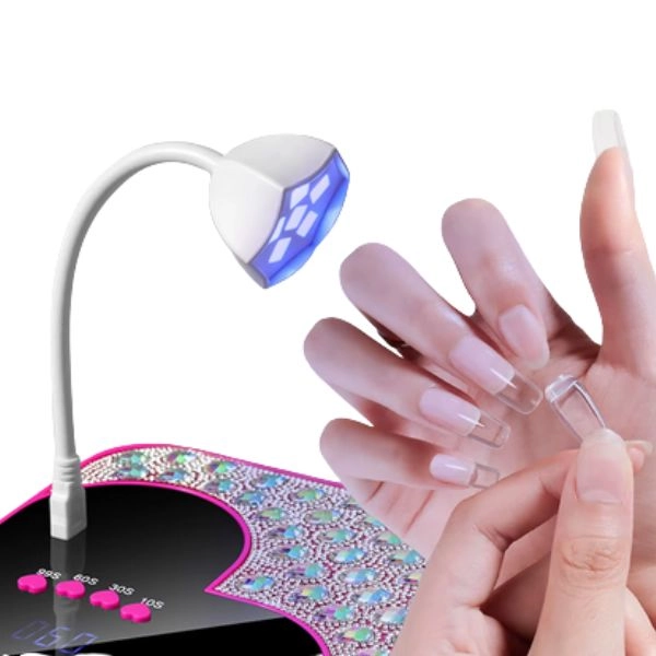 UV/LED svetilka za nohte, prekrita z okrasnimi kamni, LCD zaslon v obliki srca.