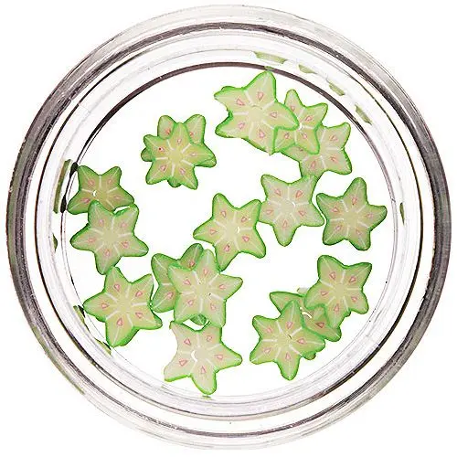 Dekoracija iz fimo mase v obliki zelenih zvezdic s svetlo roza pikami je primerna za vse vrste nohtov.