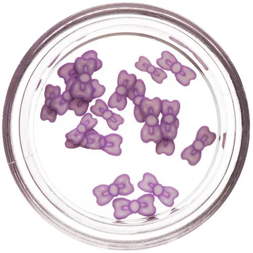 Dekoracija iz fimo mase v obliki vijolično-belih pentljic je primerna za vse vrste nohtov.